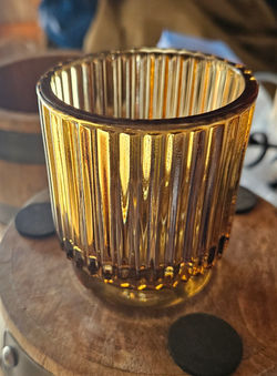![]() 171g. Amber votive candle holders, ribbed style. "Karla" .20 c ea | ![]() 171g. |