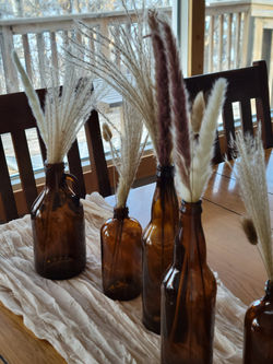 ![]() 162a. Amber vases, darker colored, decorative design. Very cute, 5" tall. $ 2 ea | ![]() 162c. GRASSES with amber bottles |